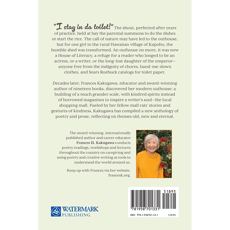 Frances Kakugawa, an educator, eldercare consultant and the award-winning author of nineteen books, grew up in a rural Hawaiian village, in a rustic home with an outhouse complete with Sears Roebuck catalogs.